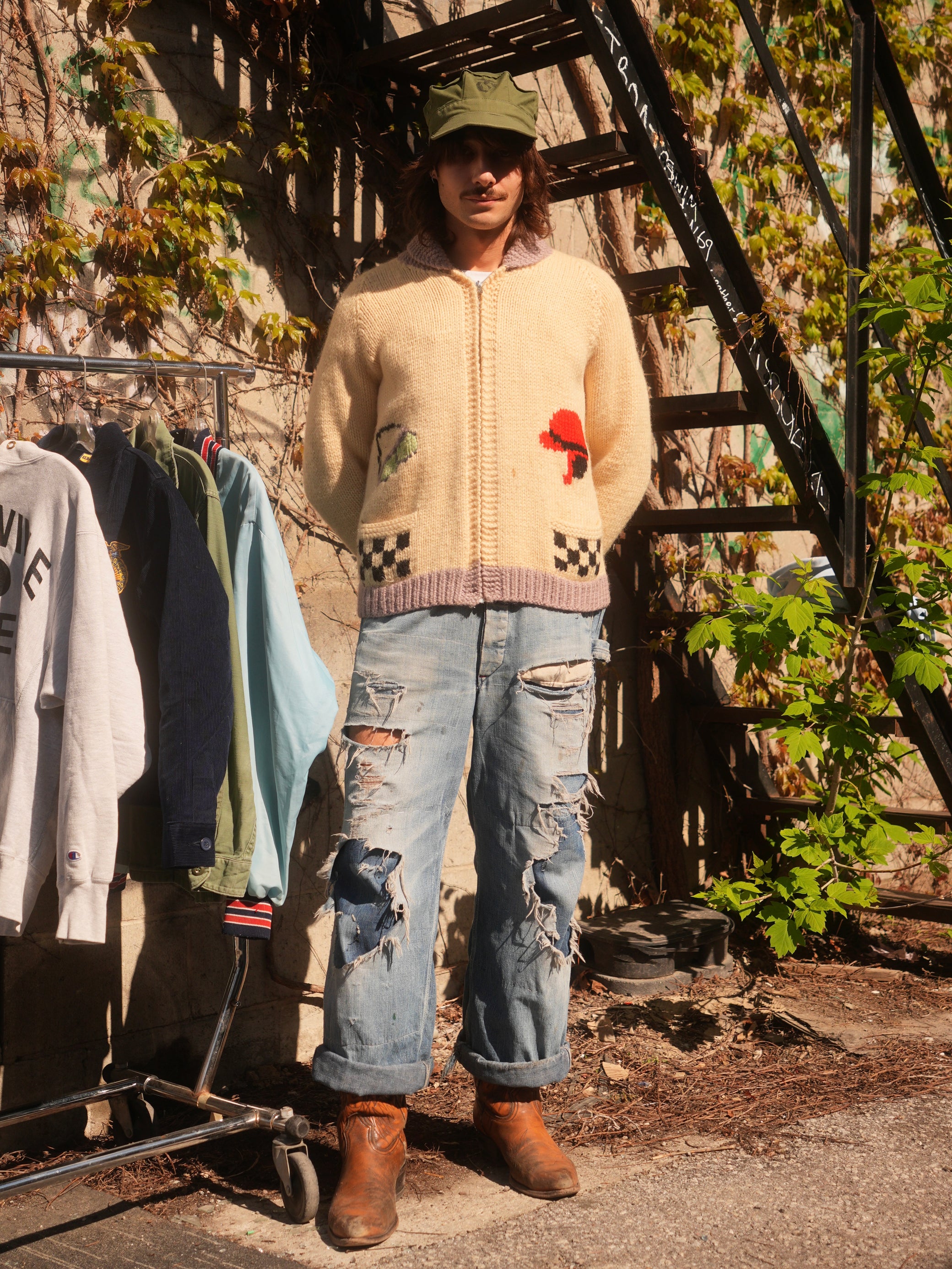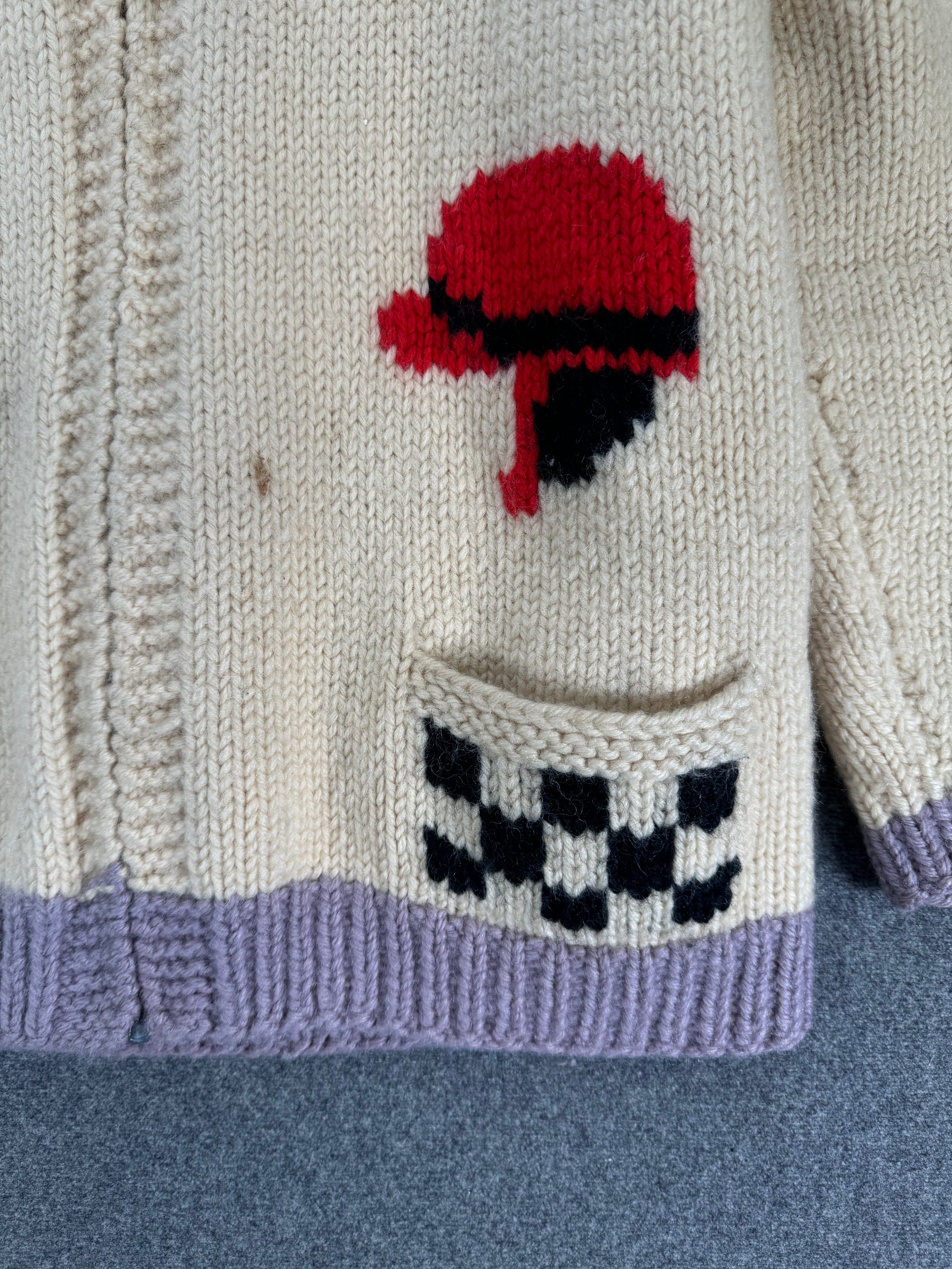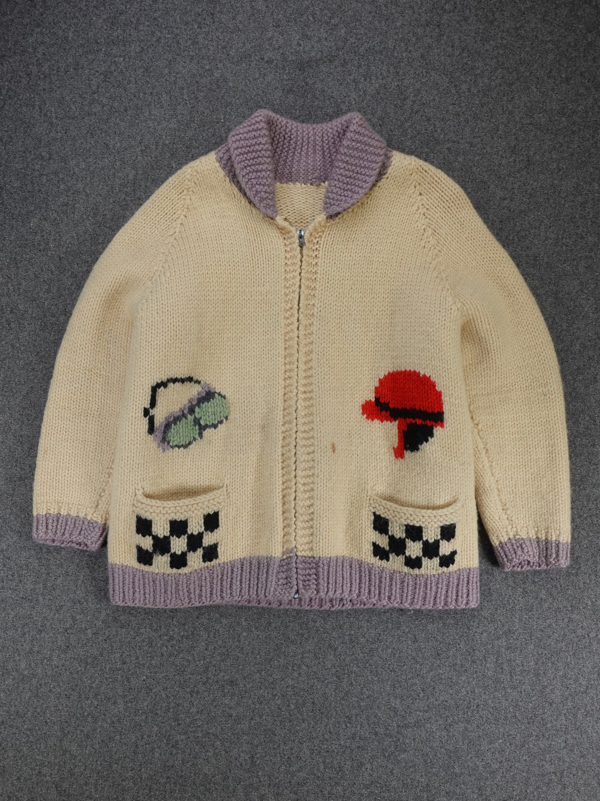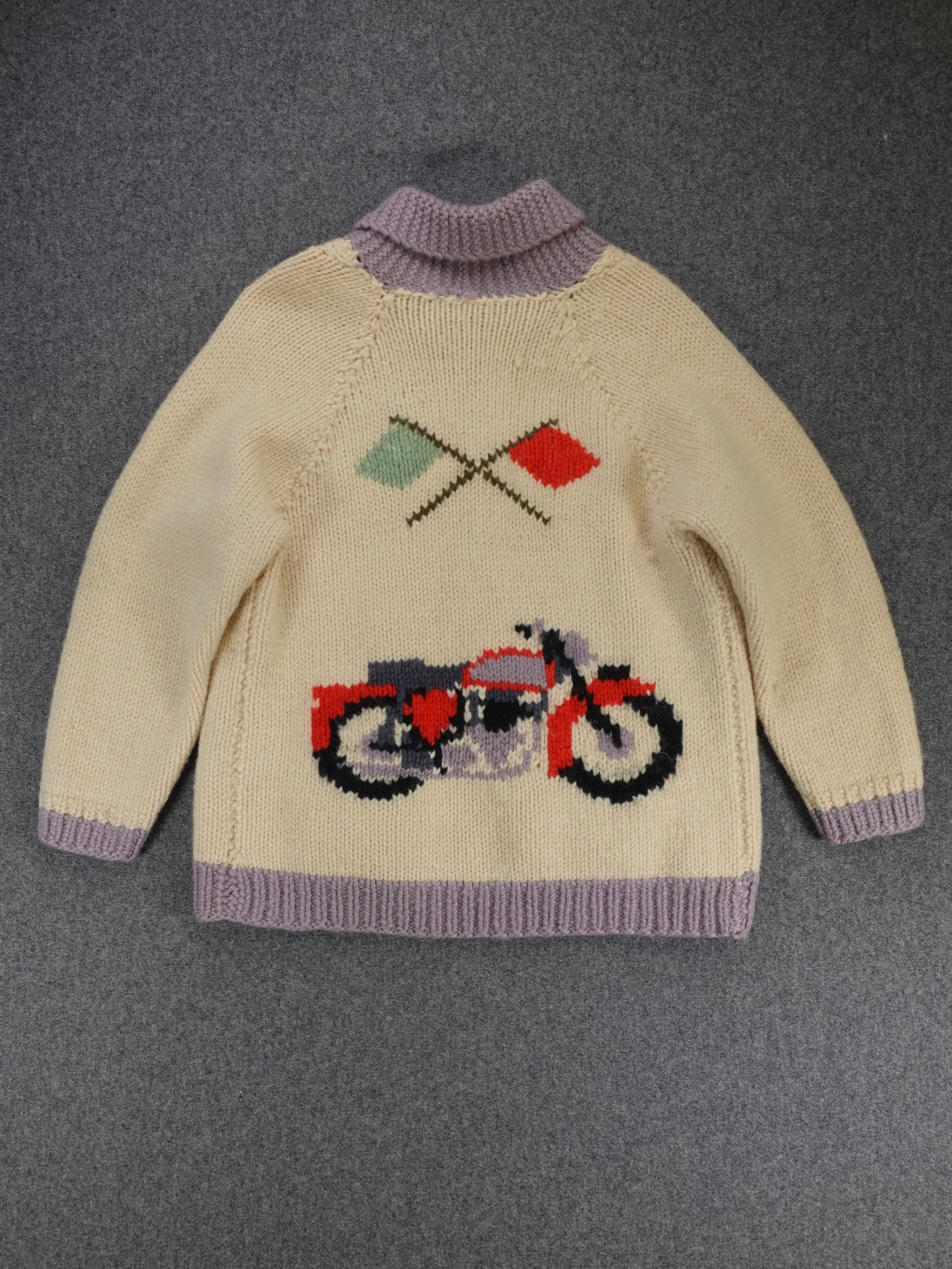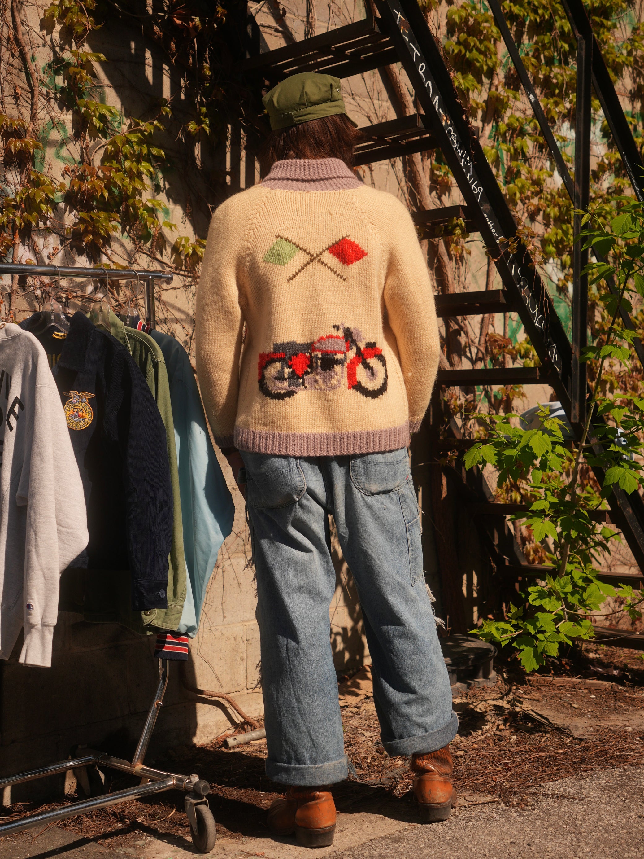 Vintage 1960s - Hand Knit Mary Maxim Style Motorcycle Pattern Cowichan Sweater
