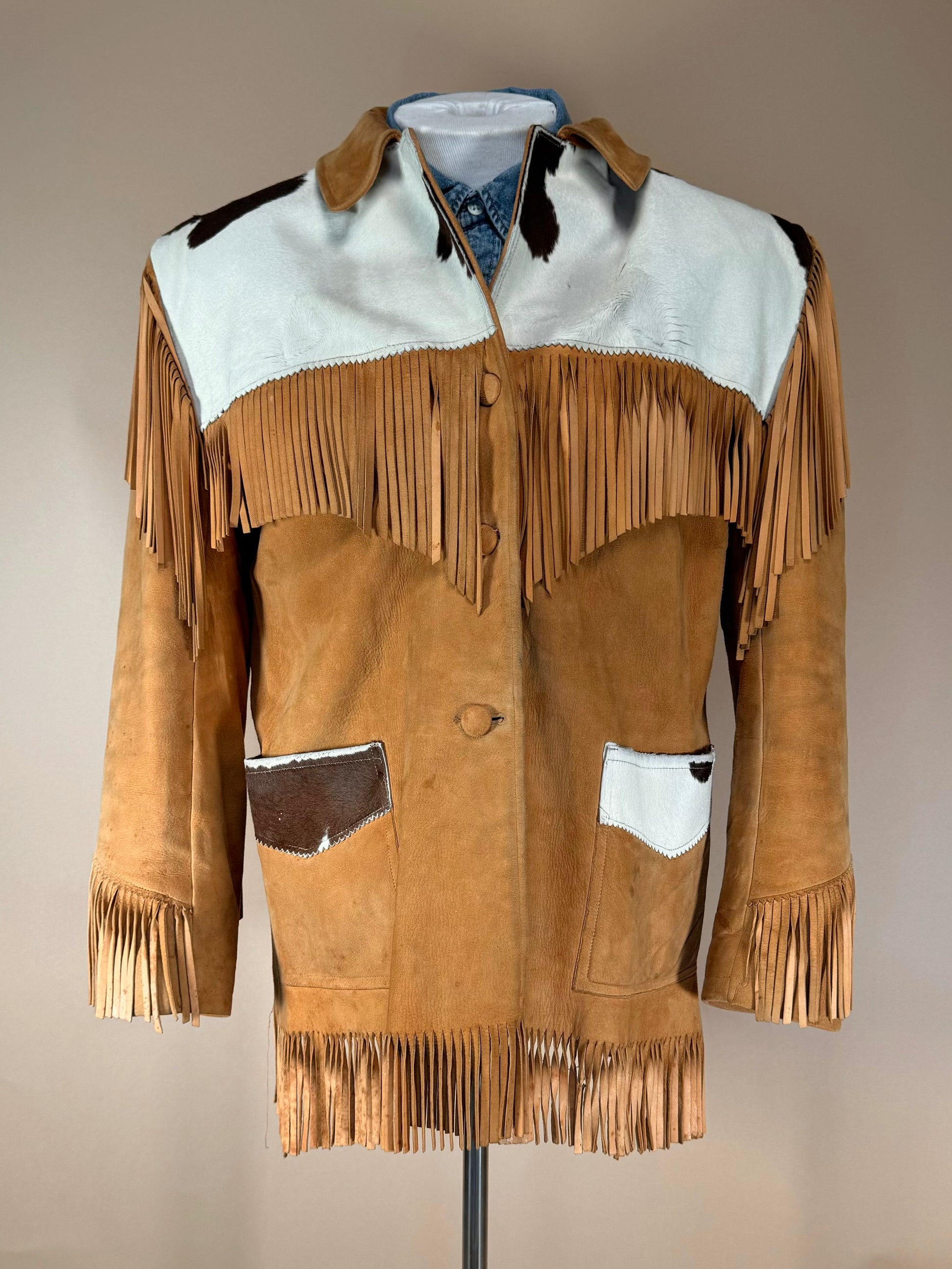 1980s - Leather Craft Process NYC Cowhide Suede Fringe Jacket with Rawhide Finishes