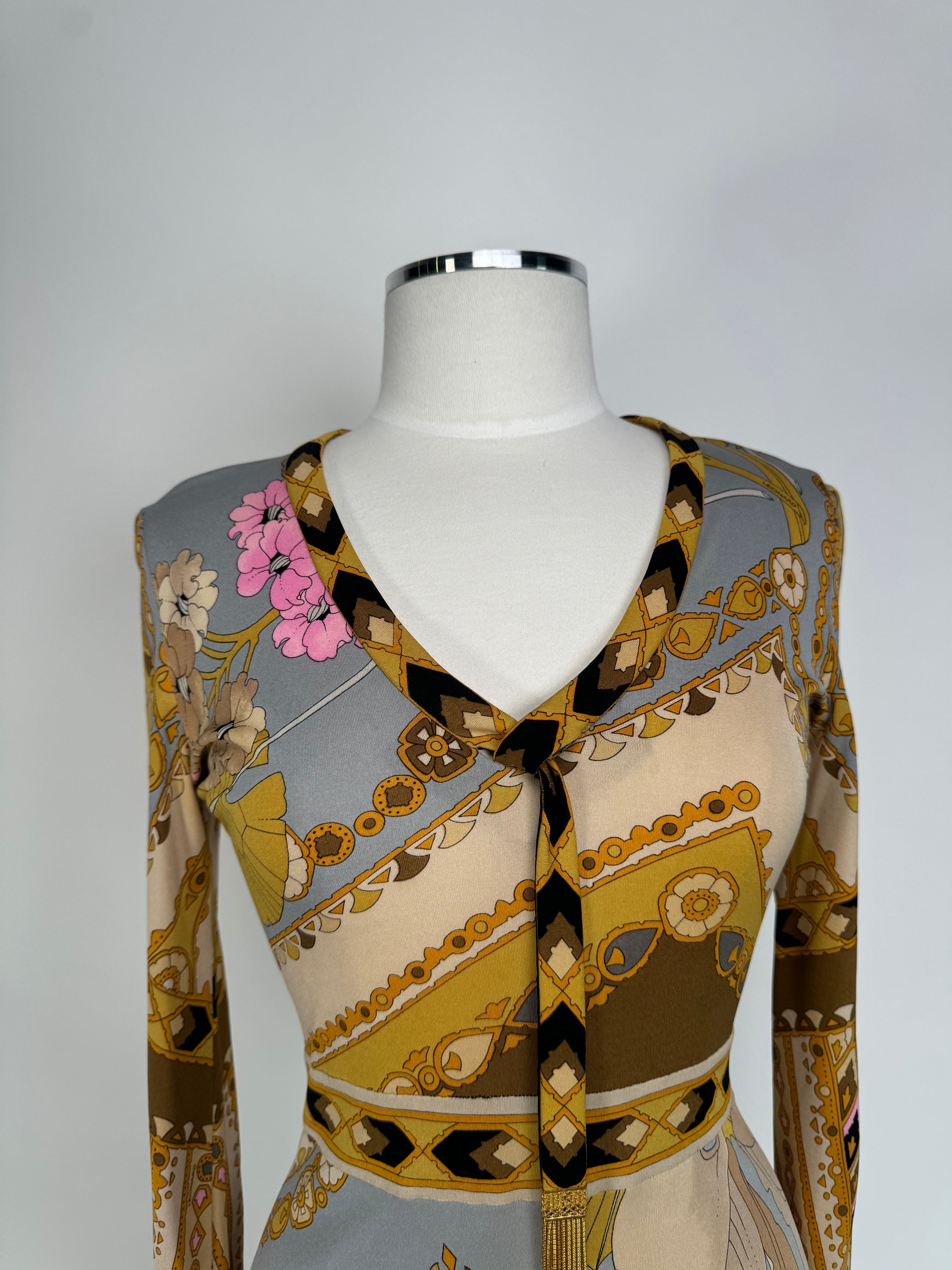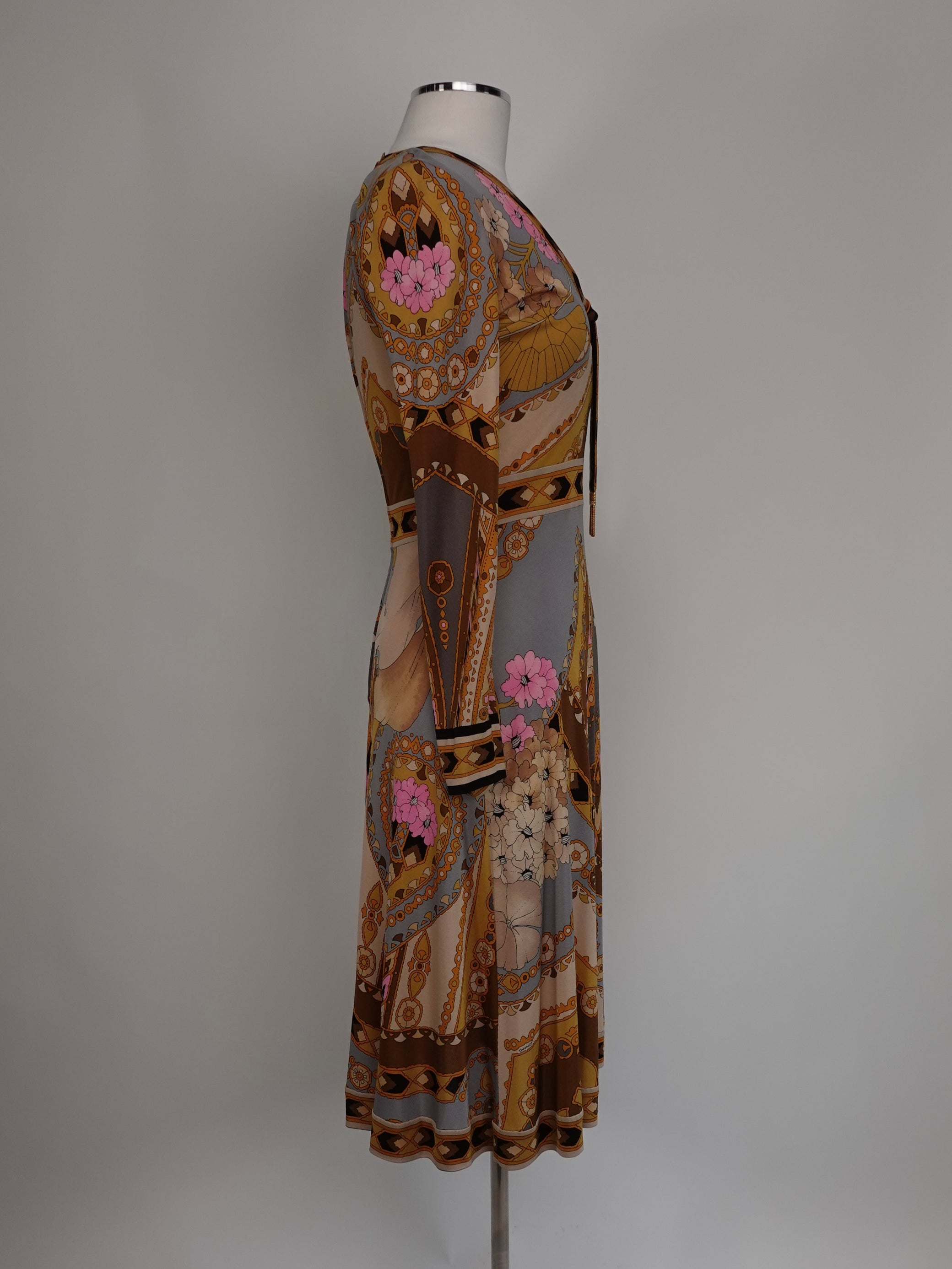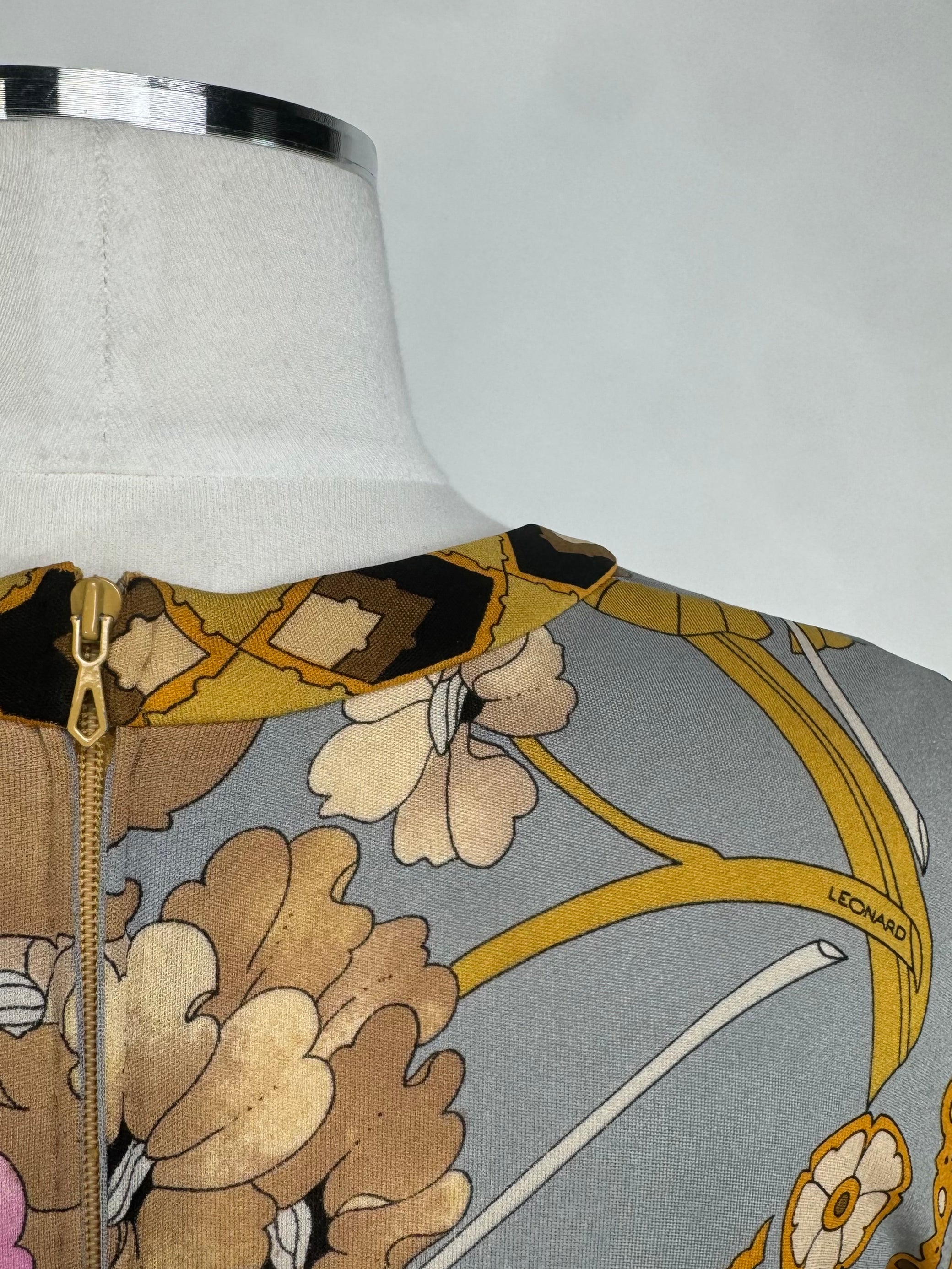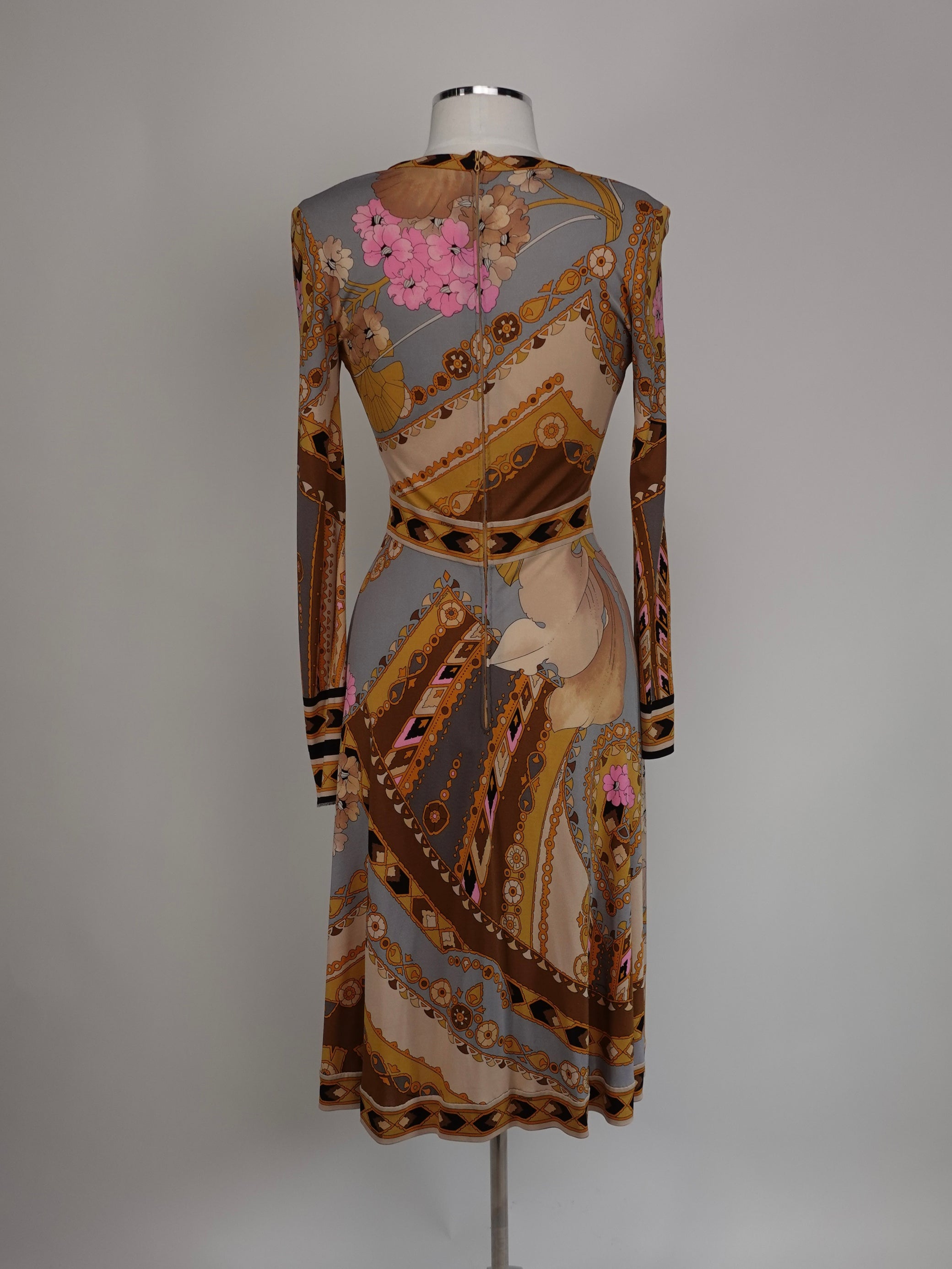 1980S - EMILIO PUCCI INSPIRED LEONARD PARIS SILK JERSEY FLORAL PRINT KNEE LENGTH DRESS