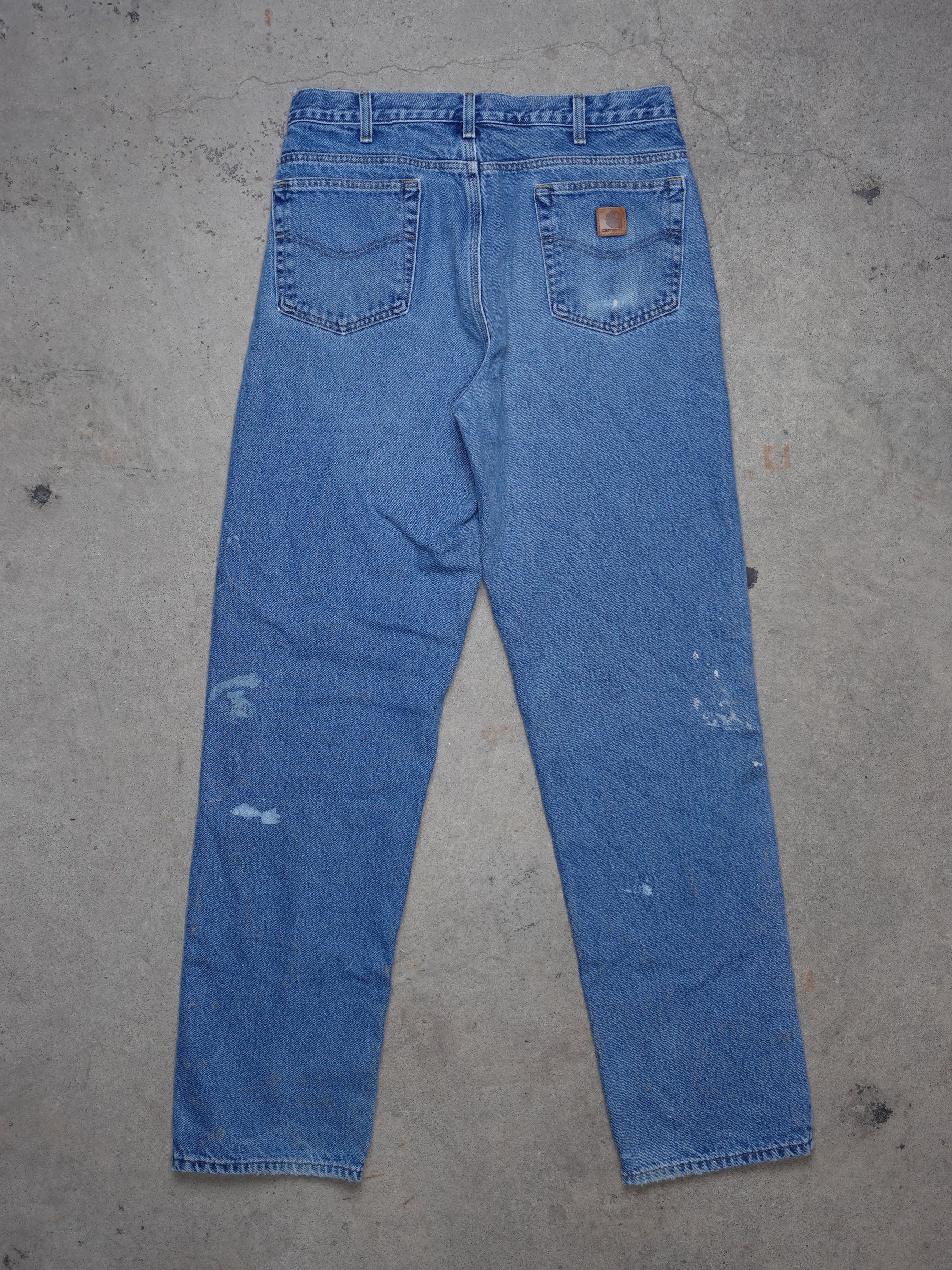 Brand new blue denim straight leg jeans, perfect for casual wear. These low rise jeans are made of high quality denim material and come in size M. Plain and versatile, a must-have for any wardrobe. Era: 2000s Condition: Like New • Visible stains on the front Color: Blue Size: M Measurements: • Waist: 34 • Bottom Inseam: 36 Fabric: Denim Sizes for vintage garments may not match the modern sizing convention. Please see measurements to ensure a proper fit.