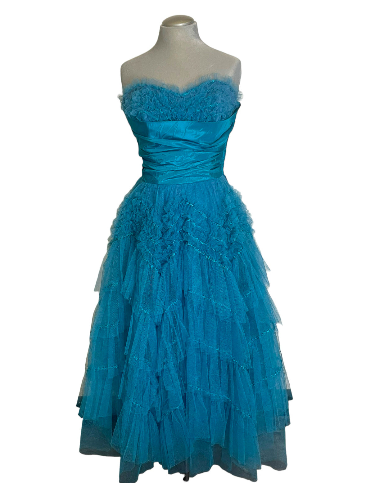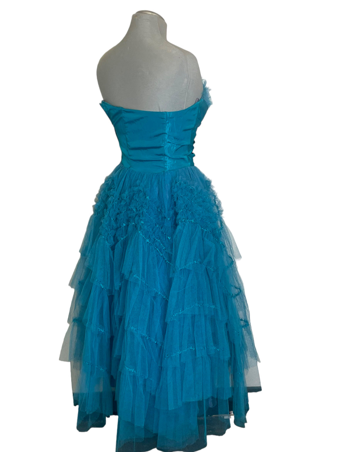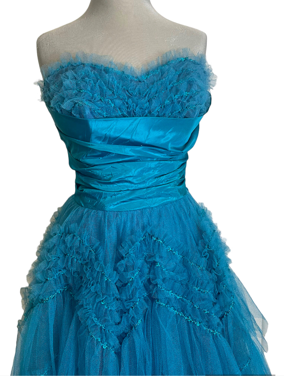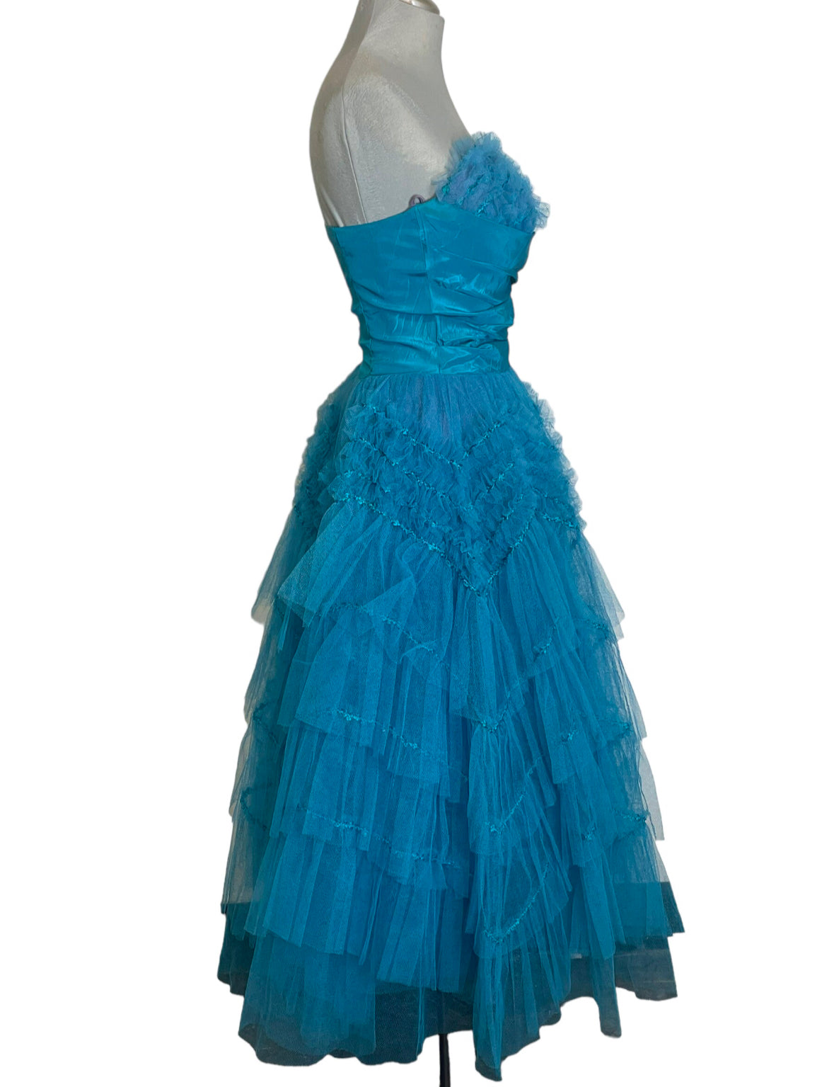 Sweetheart Teal Tulle 1950s Débutante Dress