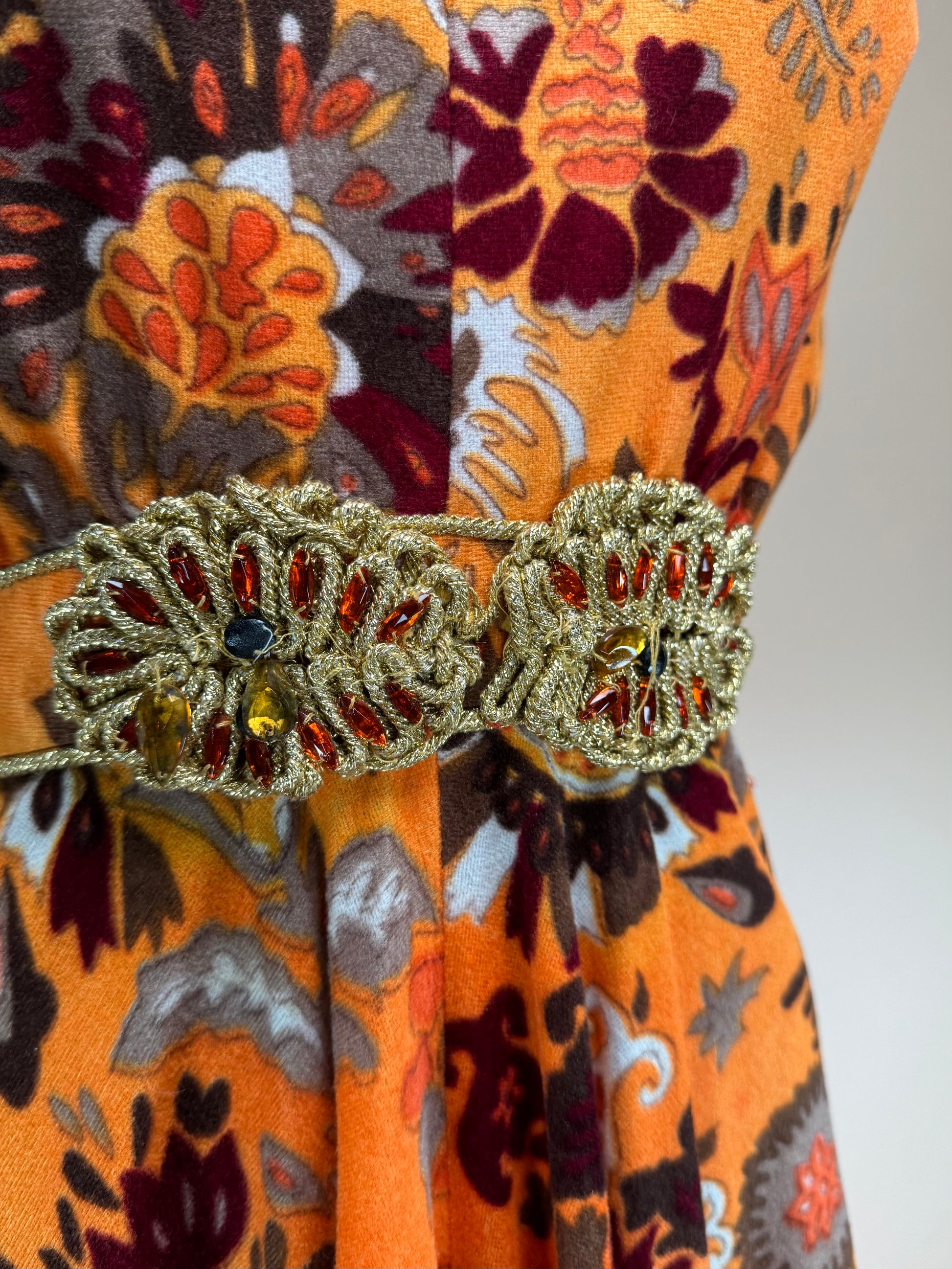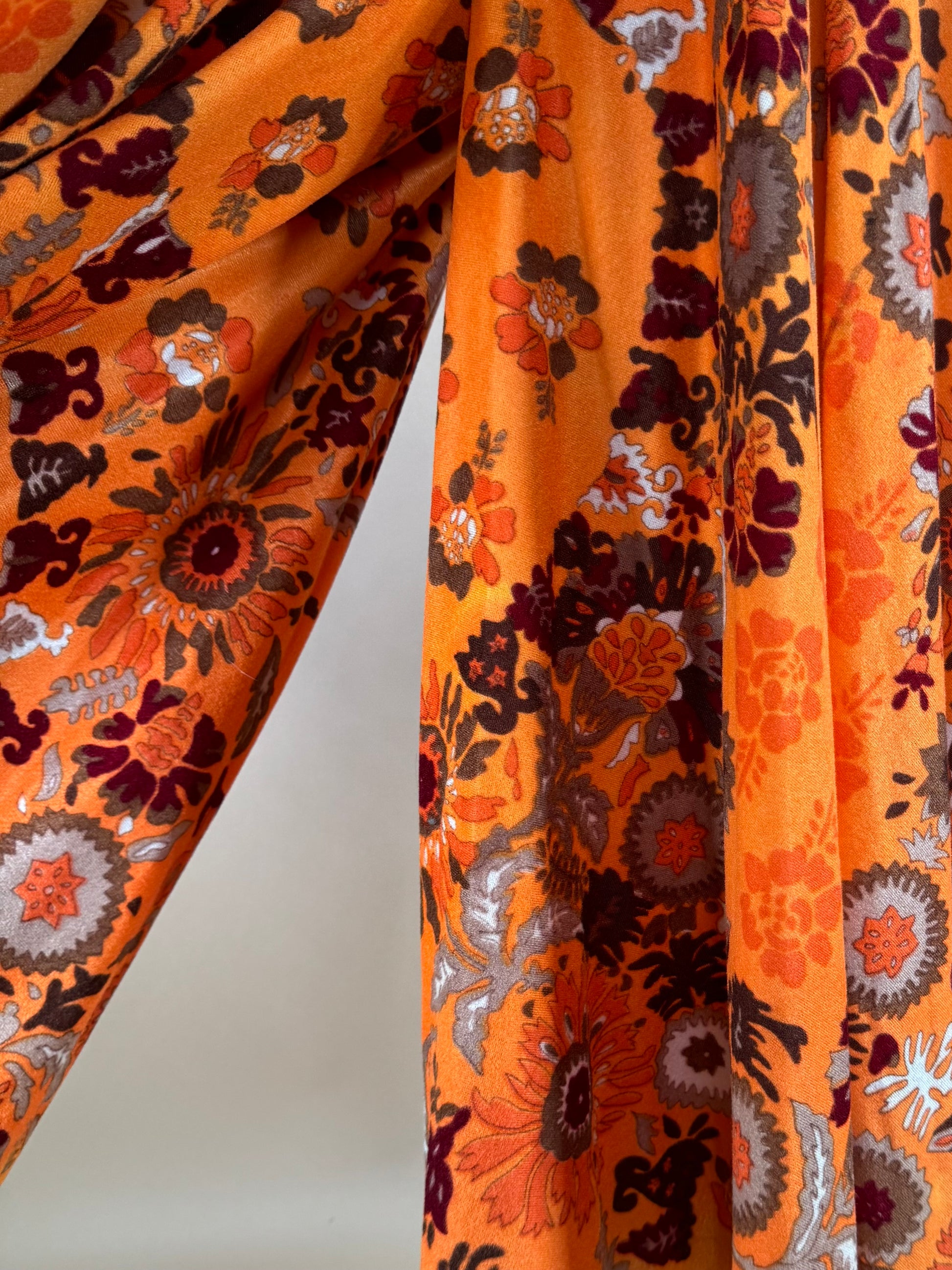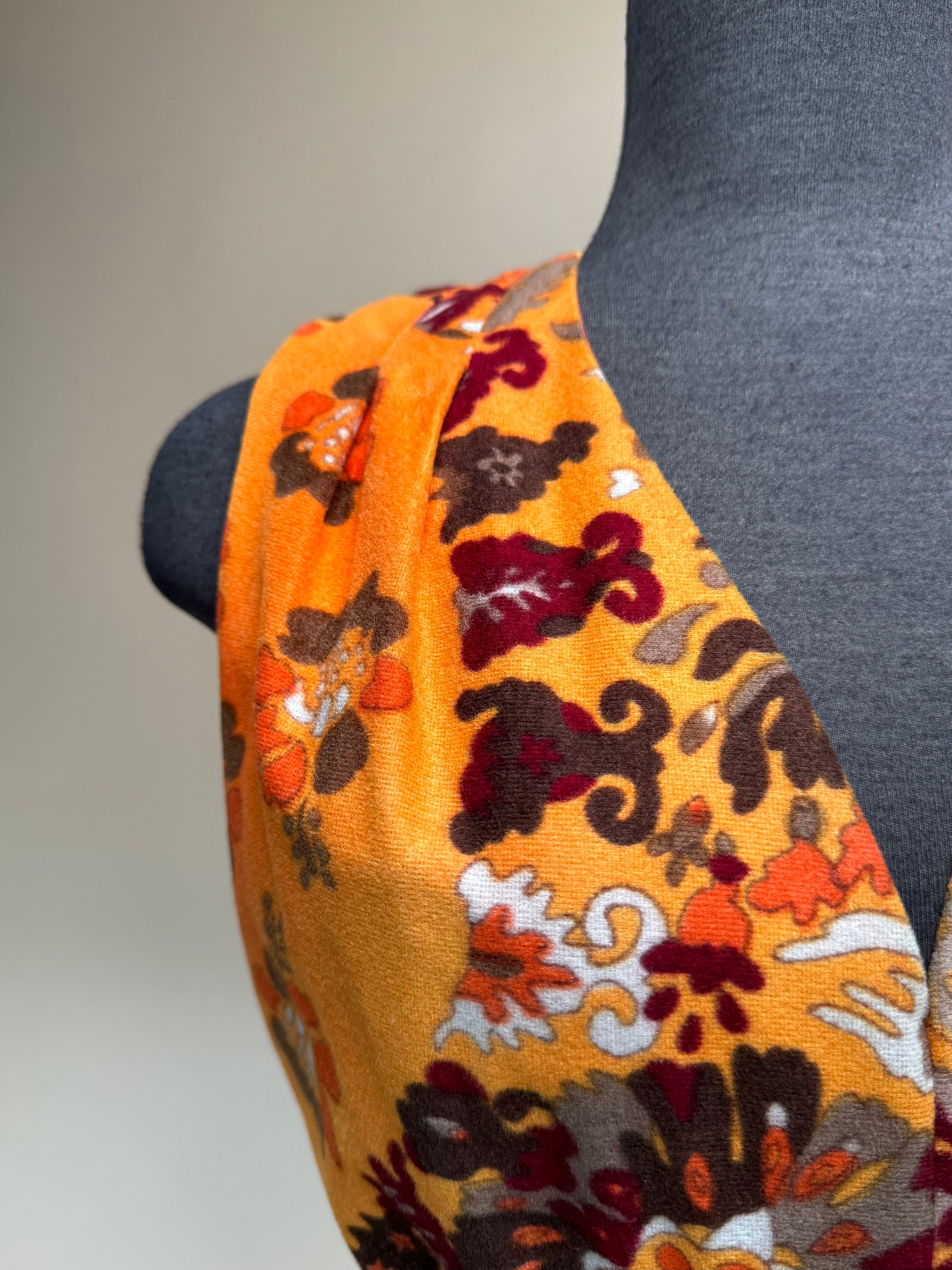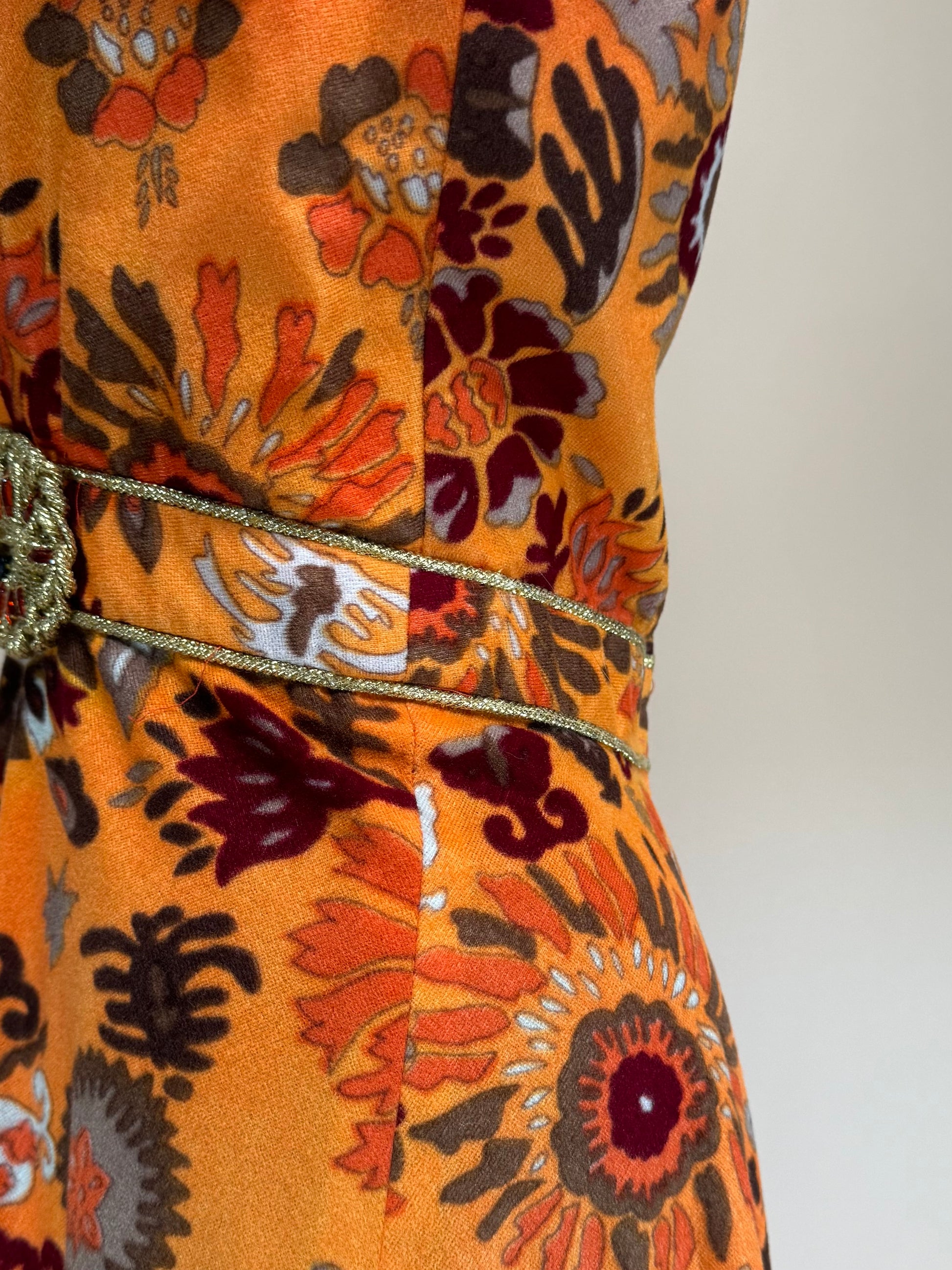 Vintage 1950s | Orange Psychedelic Floral Velveteen Jumpsuit