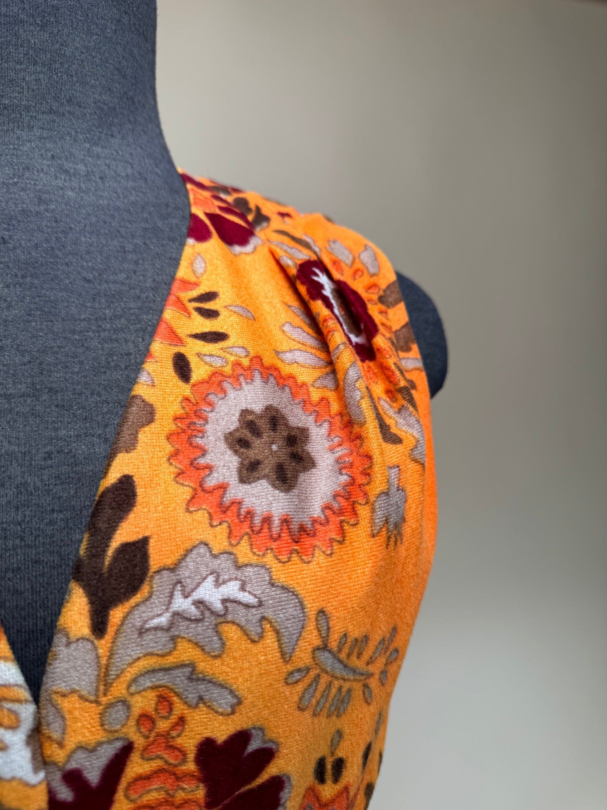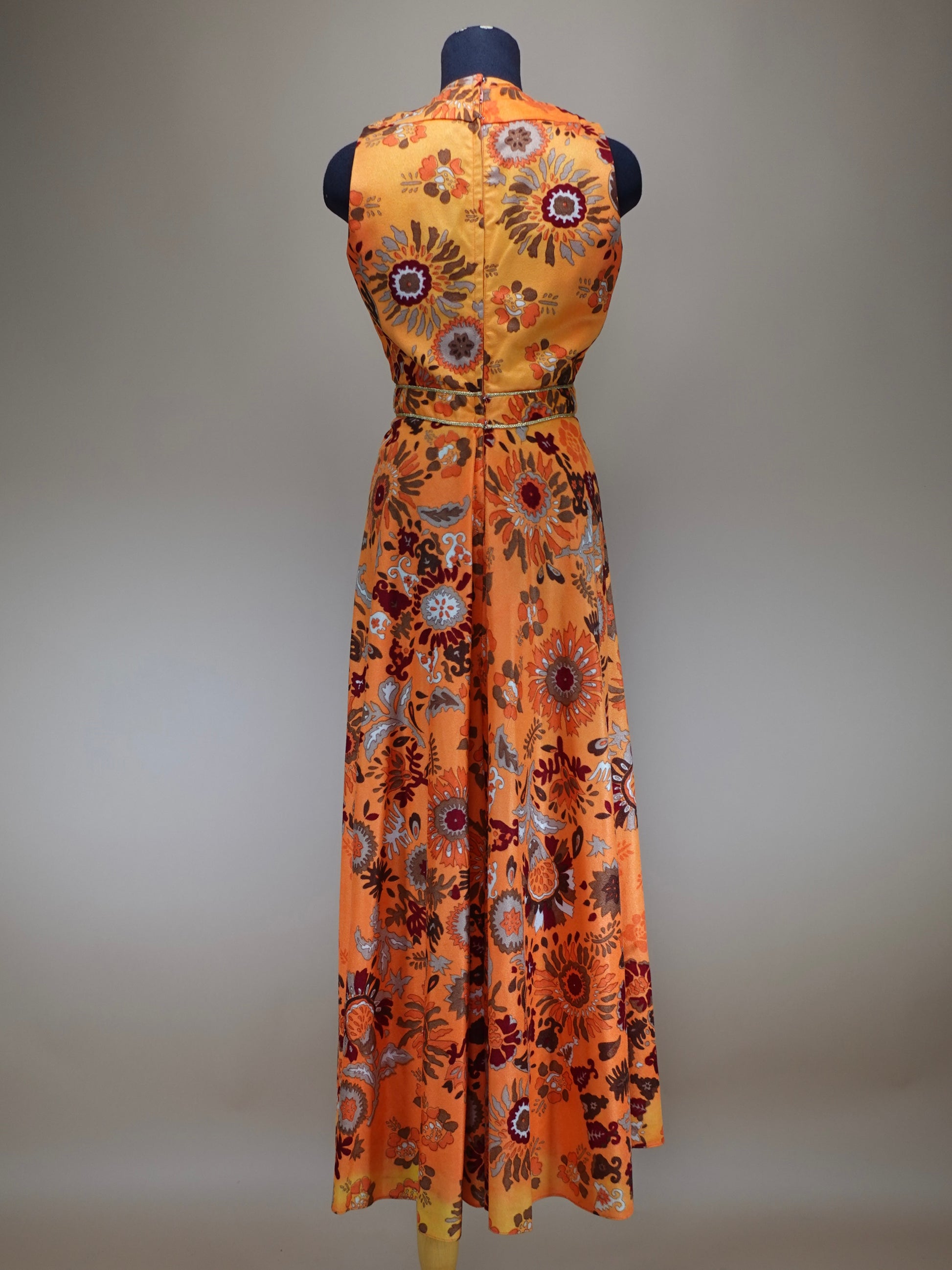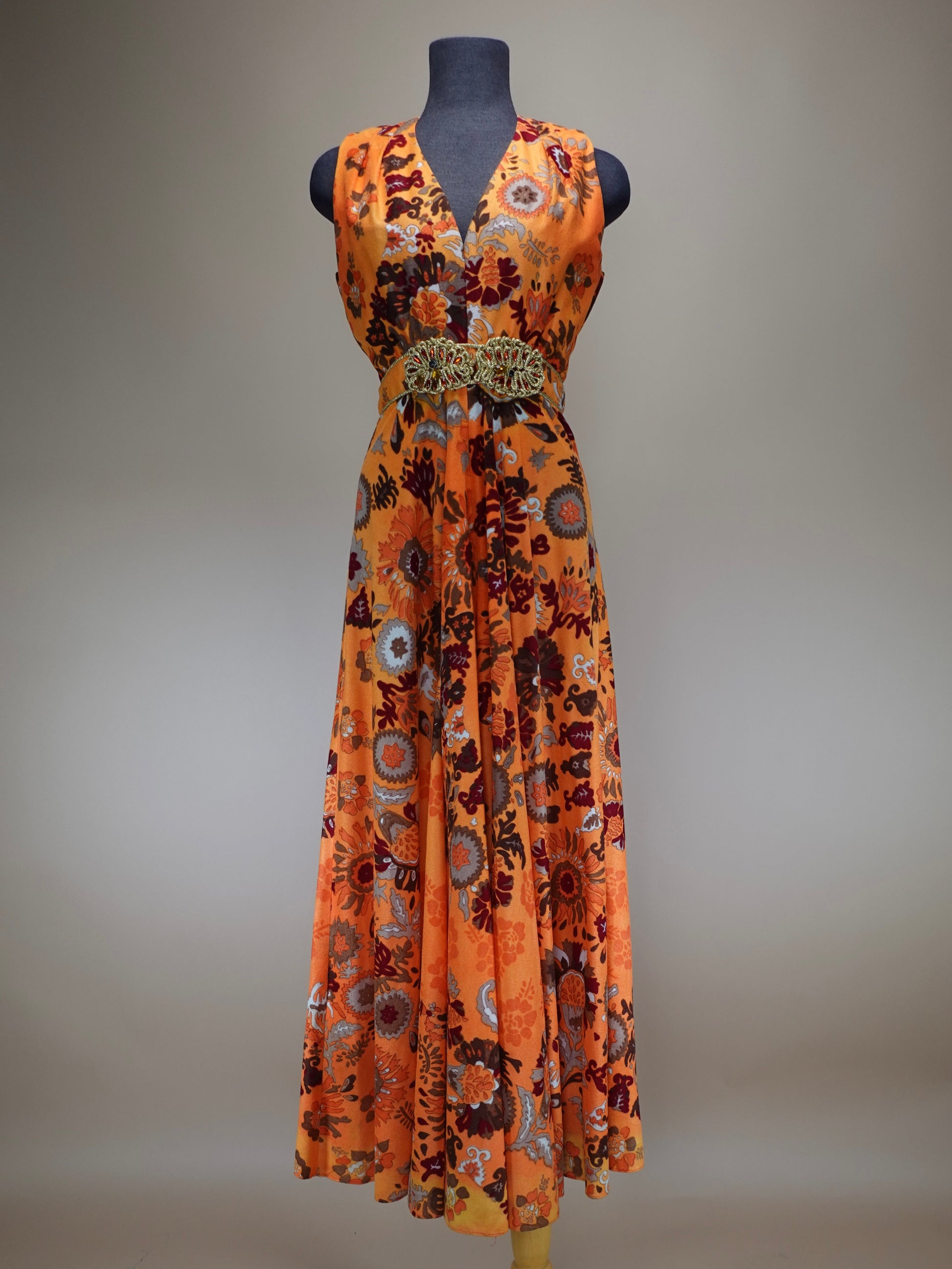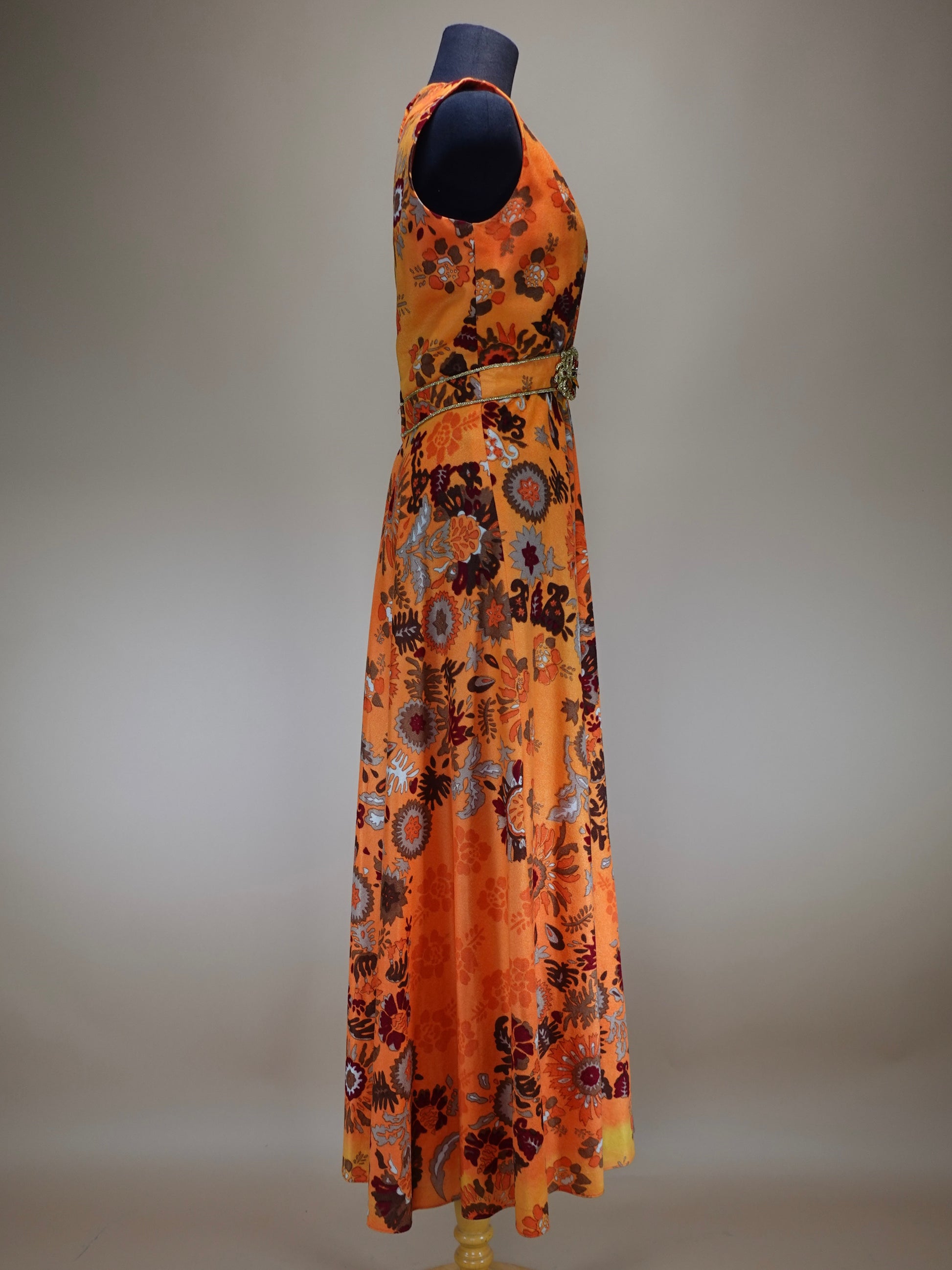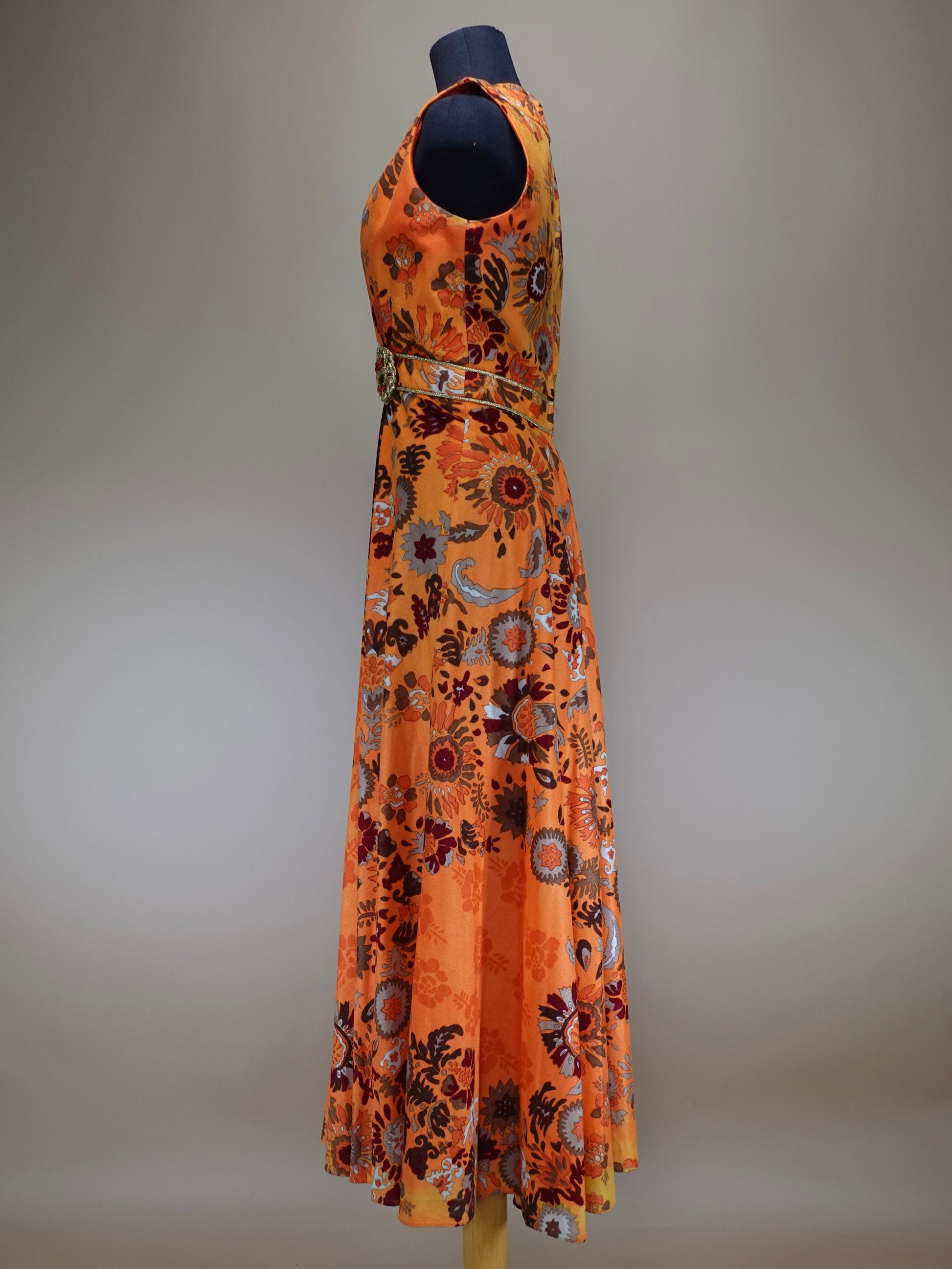 Vintage 1950s | Orange Psychedelic Floral Velveteen Jumpsuit