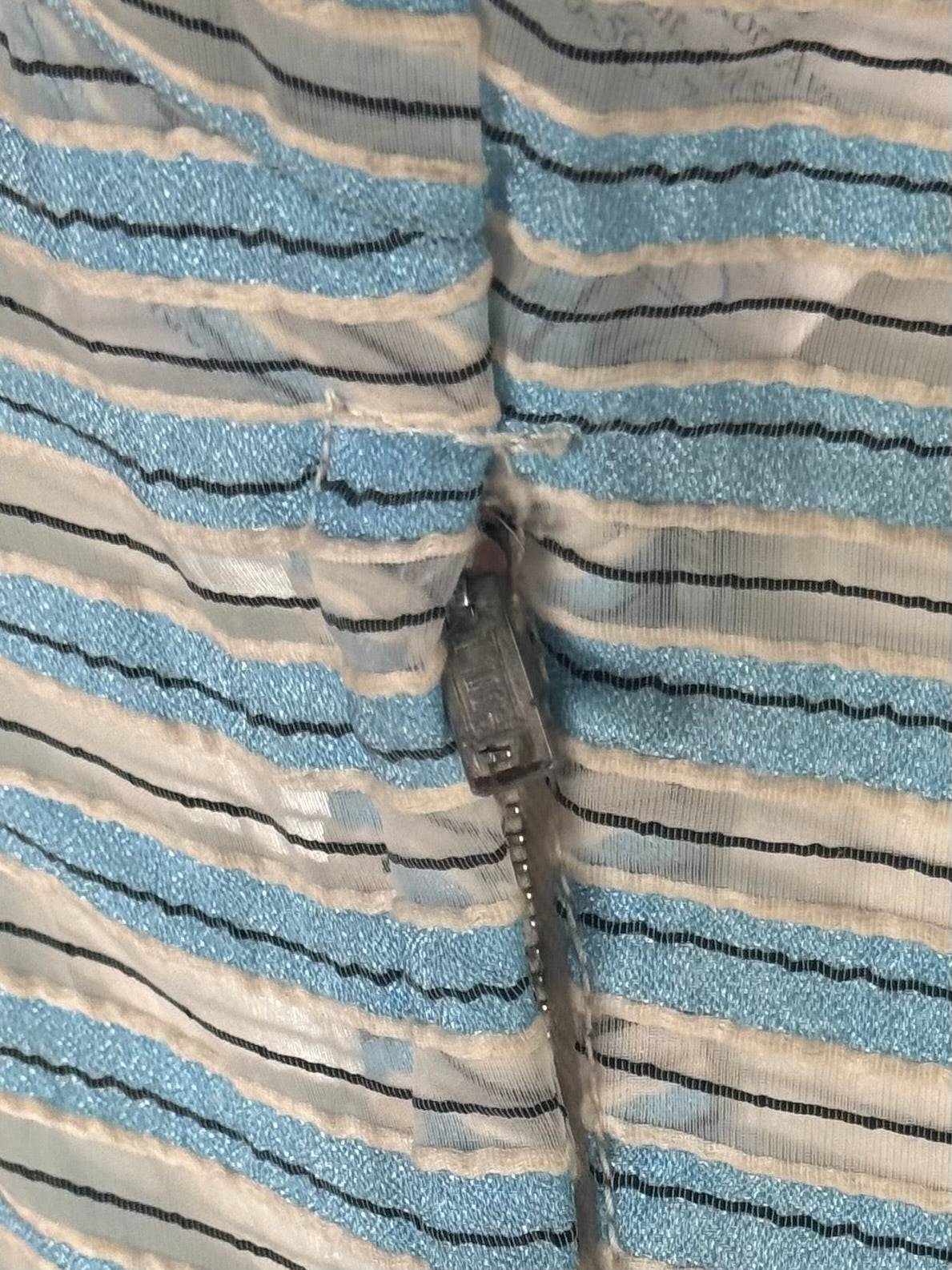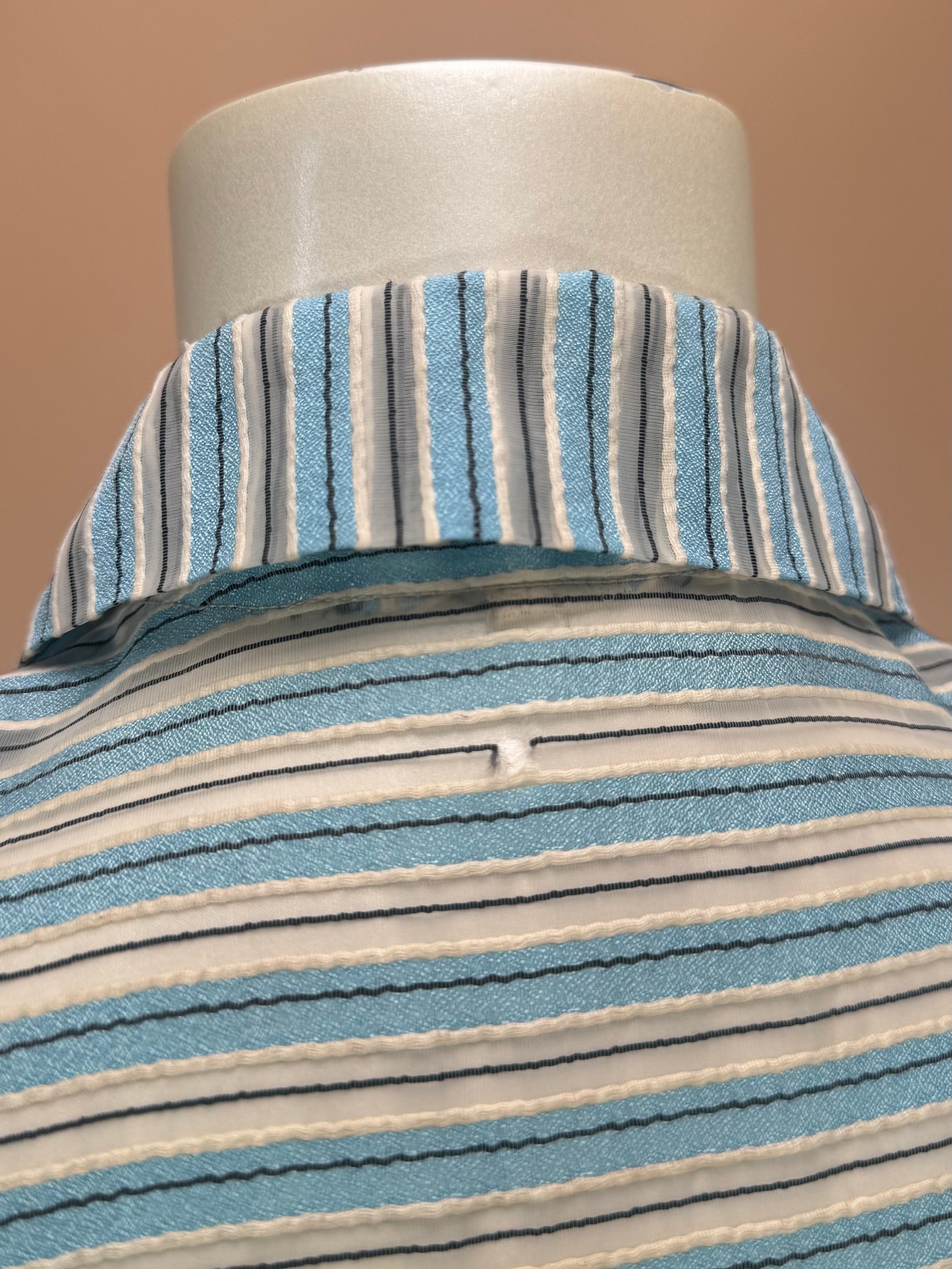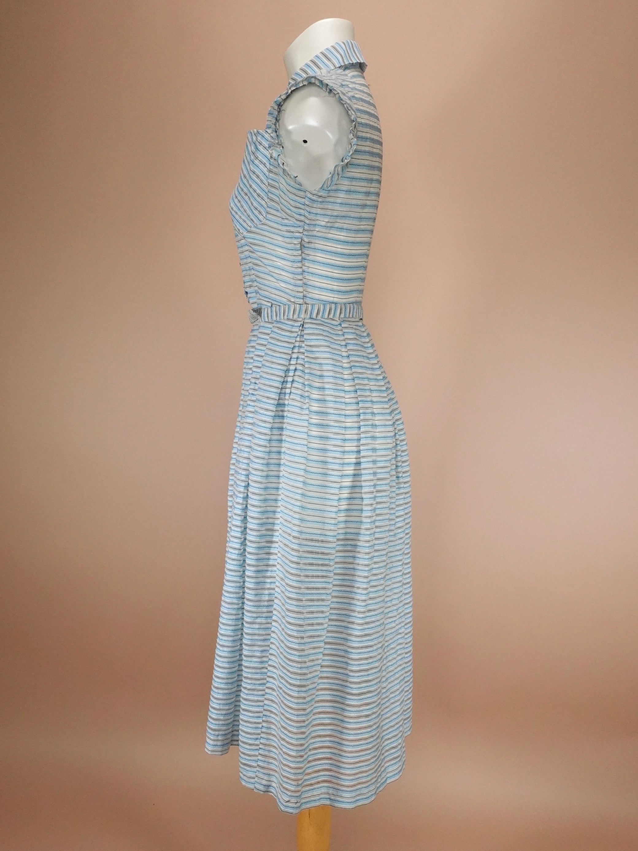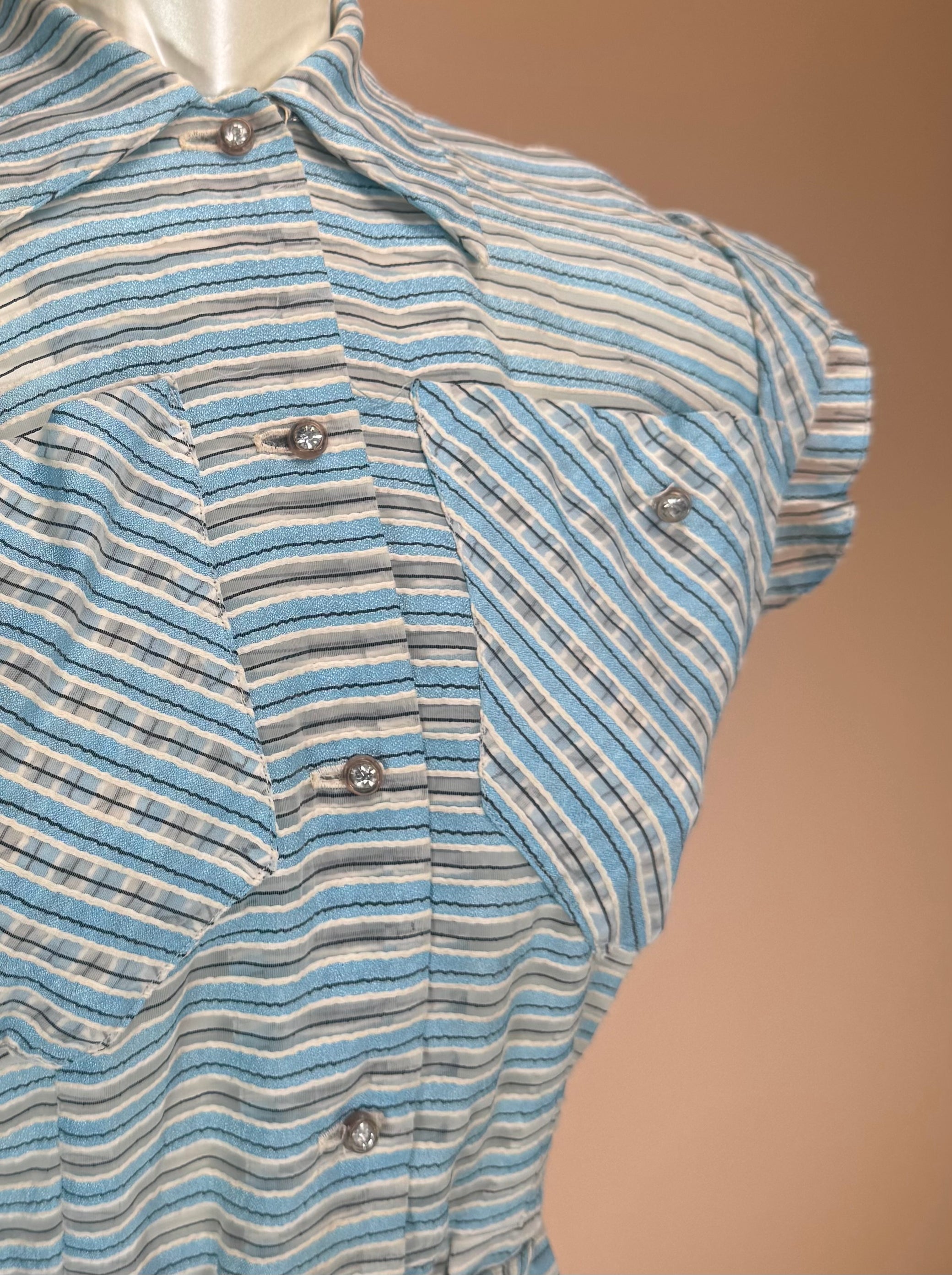Vintage 1950s | Sky Blue & Stone Grey Striped Cotton Casual Shirtwaist Day Dress