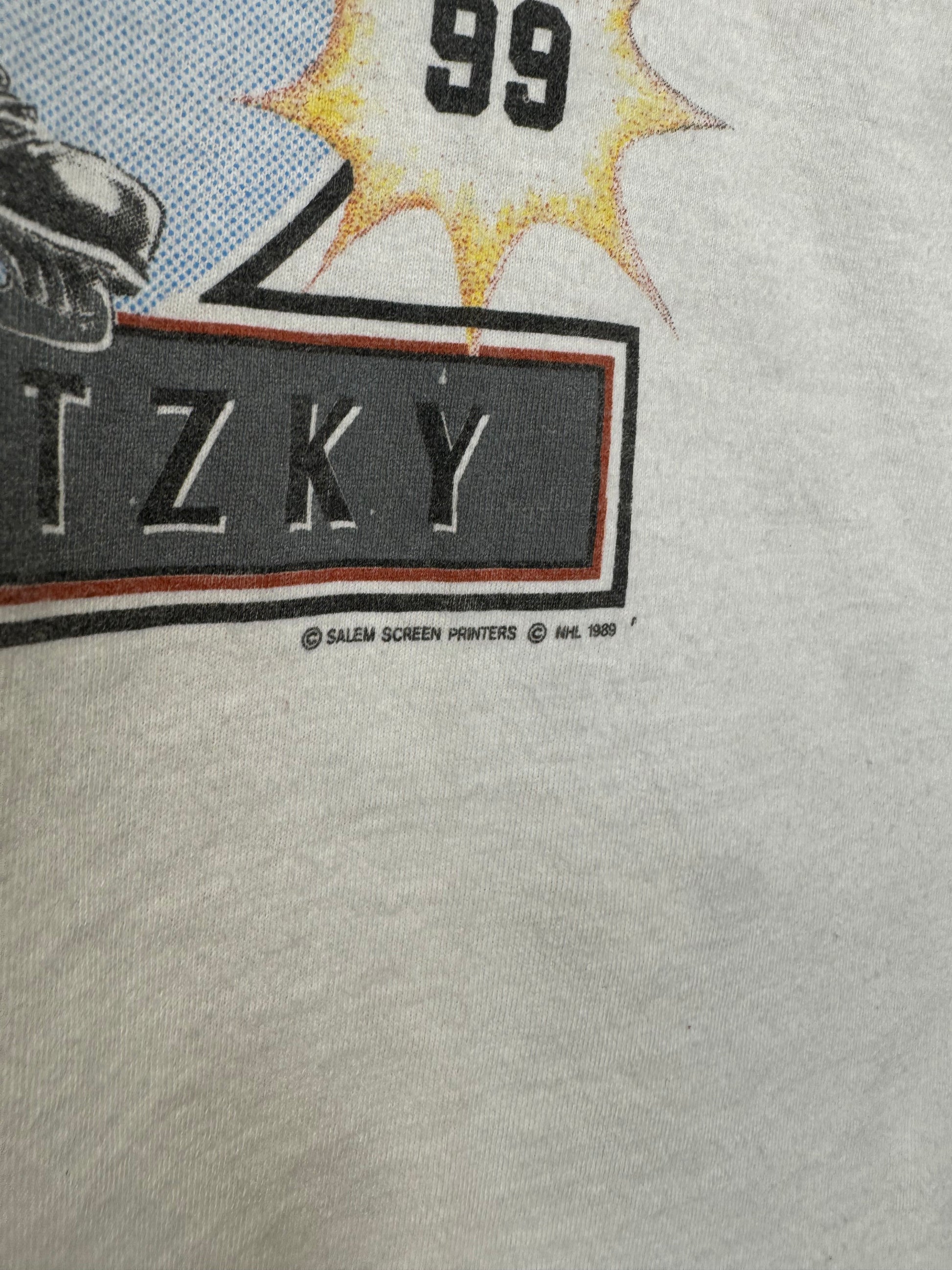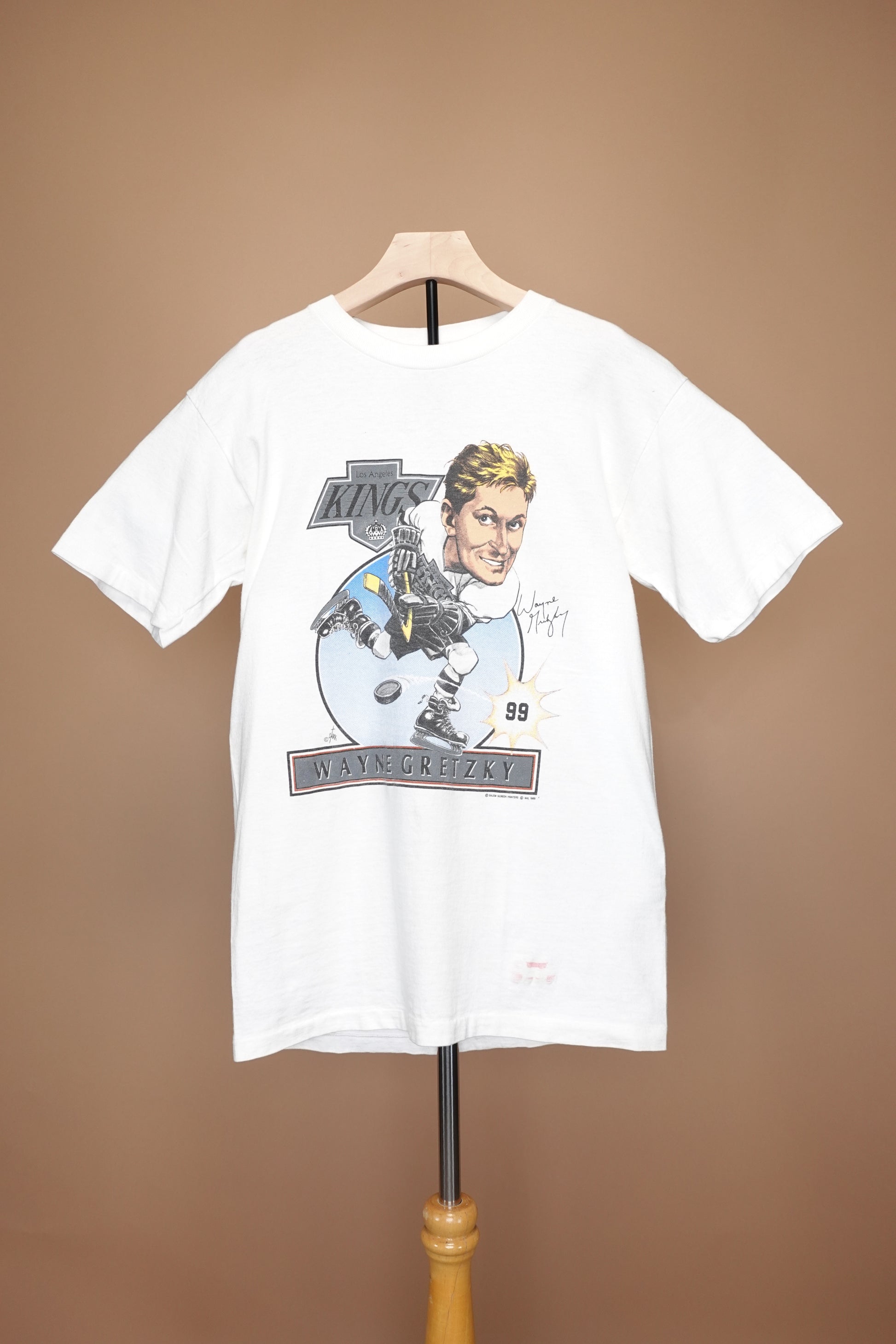 Authentic vintage 1980s Los Angeles Kings Wayne Gretzky t-shirt, featuring a vibrant graphic print, perfect for sports enthusiasts and vintage collectors alike.