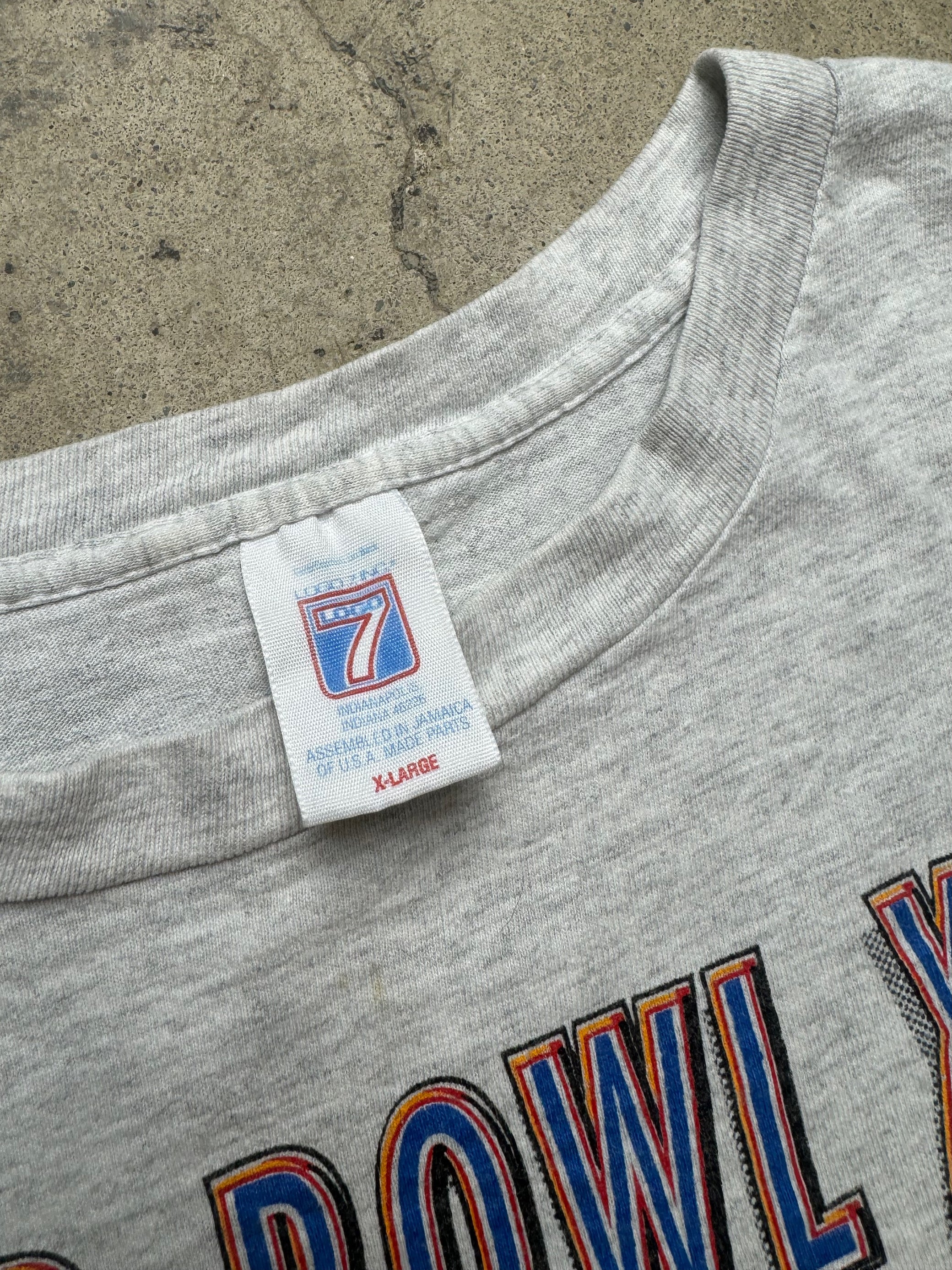 Celebrate the iconic Super Bowl XXVI with this vintage 1990s graphic t-shirt, perfect for sportswear enthusiasts and collectors. - Era & Style: Authentic 1990s vintage with a sportswear aesthetic. - Brand & Material: Made by Logo 7, crafted from soft cotton. - Fit & Features: Regular fit with bold graphic print featuring the Buffalo Bills vs. Washington Redskins. - Ideal Use Cases: Perfect for casual outings, sports events, or as a collectible piece for football fans.
